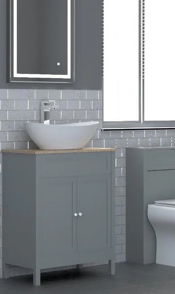 CHELSEA SHAKER STYLE GREY VANITY WITH OAK EFFECT COUNTER TOP & CHELSEA OVAL SINK