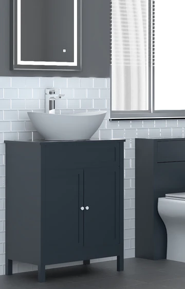 CHELSEA SHAKER STYLE GREY VANITY WITH GREY COUNTER TOP & CHELSEA OVAL SINK